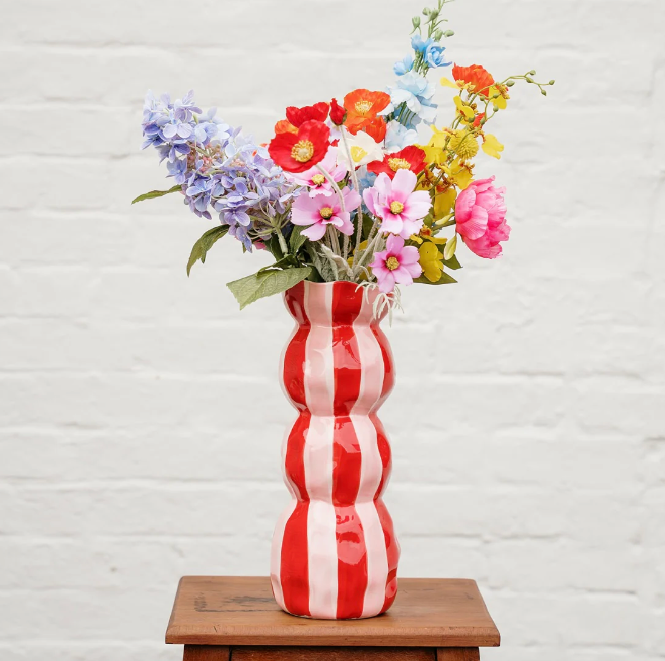 3 Tier Vase - Red & Pink Stripe